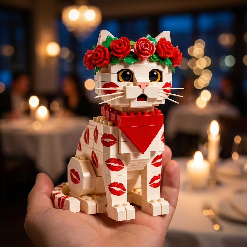 💋 Rose Kiss Cat Brick Figure